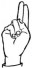 На ћирилици написано ВУК ДОНЧИЋ састоји се из 9 слова [?]. Исписано ћириличном једноручном азбуком за глувонеме: